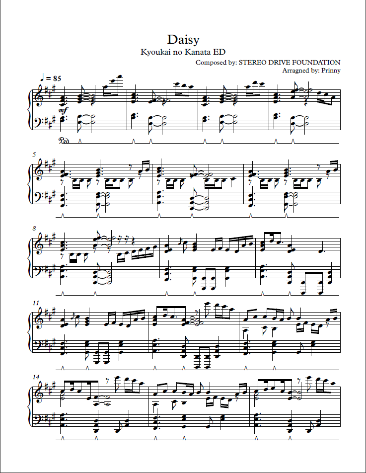 Daisy Kyoukai no Kanata sheet music Sheethost
